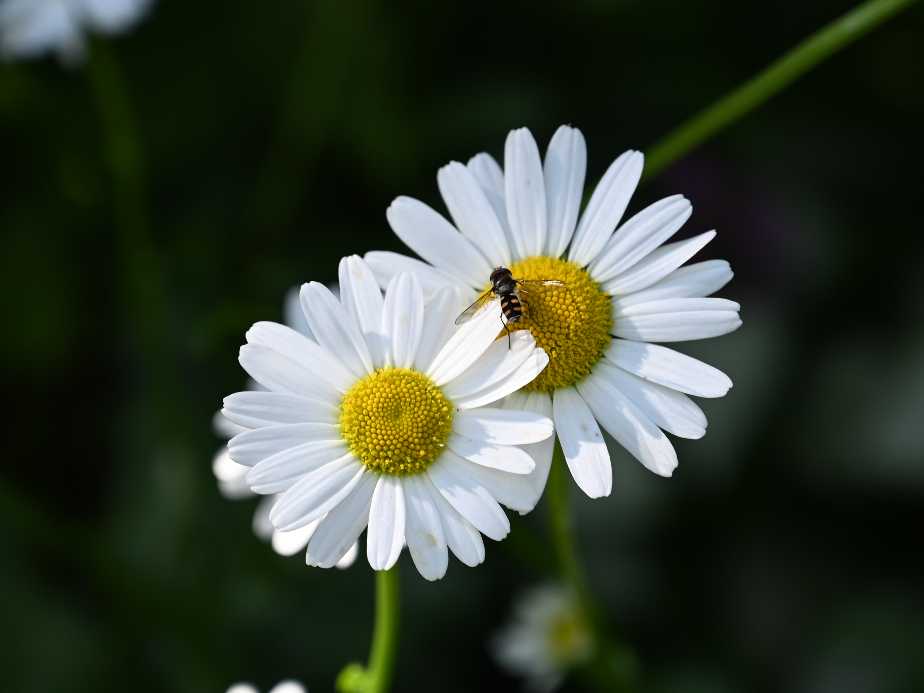 Two daisies and a wasp