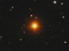 (U Cam) is the moderately bright red star in the middle of the image. It is listed in SIMBAD as a carbon star and it has a spectral type C-N5. Visually, U Cam is observed to be the classic deep-hued red color common to most carbon stars.
