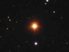 (UV Cam) is the moderately bright red star in the middle of the image. It is listed in SIMBAD as a carbon star and it has a spectral type C-J4. Visually, U Cam is observed to be a deep-hued red color often seen in most carbon stars.