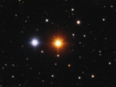 The moderately bright blue star directly to the left of WZ Cas is the B component of this multple star and has the designation HD 224869. This star is an optical double to WZ Cas so it is just a chance alignment and the star is not an actual member of the WZ Cas physical star system.
